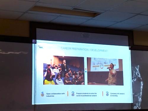大学交流会は国内最高峰の大学であるインドネシア大学工学部と私立大学ランキング No.1のビヌス大学で開催され、日本企業の紹介と学生とのグループディスカッションが行われました。機械・電気・IT・建設分野など多分野の学生が参加されました。