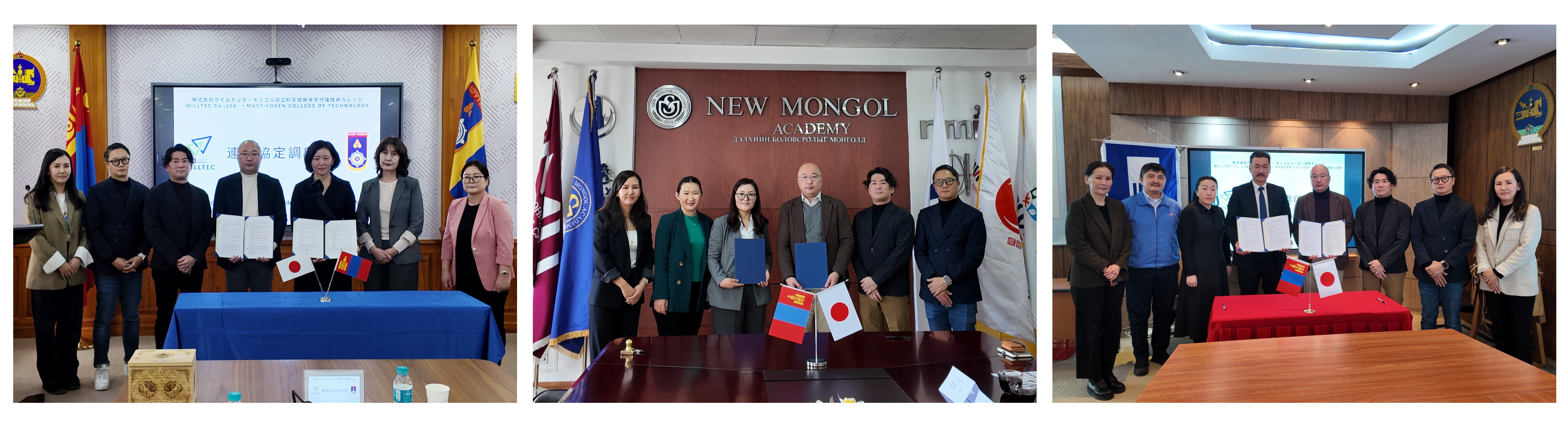 ウイルテック当社は、2026年3月、モンゴルにおける海外人材の採用・育成を目的に、以下の3つの高等専門学校(モンゴルコーセン技術カレッジ、モンゴル国立科学技術大学付属技術カレッジ、新モンゴル高専技術カレッジ)とMOU(基本合意書)を締結いたしました。