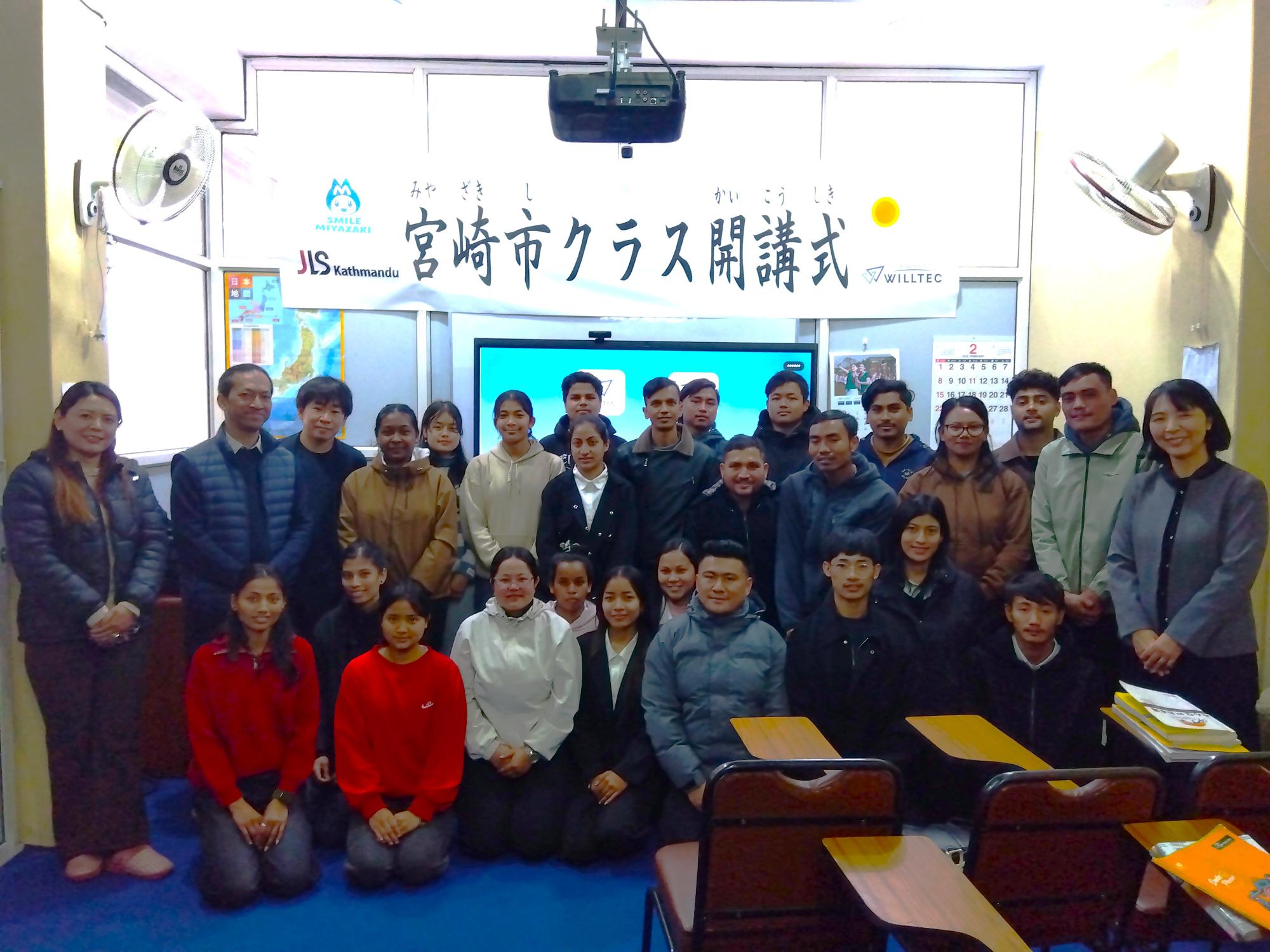 宮崎市(市長:清山 知憲)と当社は2026年2月3日、日本での就労を目指すネパール人材に宮崎市の魅力を伝え、日本語教育や渡日に向けた教育を行う「宮崎市クラス」をネパールのカトマンズにある当社グループ運営の日本語学校「JLS(Japanese Language School)カトマンズ」に開講いたしました。また、翌日の2月4日には、同校にて開講式授業が行われました。